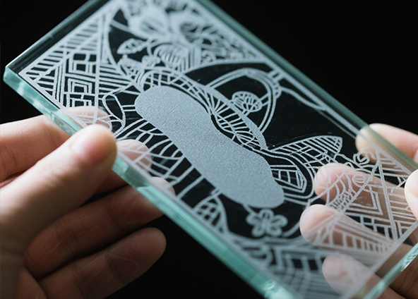 Een CO₂-laser wordt goed geabsorbeerd door het glasoppervlak en wordt vaak gebruikt voor oppervlaktegraveren. Het graveereffect van een CO₂-laser ziet eruit als een mat wit patroon, waardoor het geschikt is voor reclame, artistieke decoratie en cadeaubelettering. Ultraviolette (UV) lasers hebben daarentegen een kortere golflengte en werken in een “koude verwerkingsmodus” met een minimale door hitte beïnvloede zone. UV-lasers kunnen fijne lijnen, QR-codes en logo's produceren.