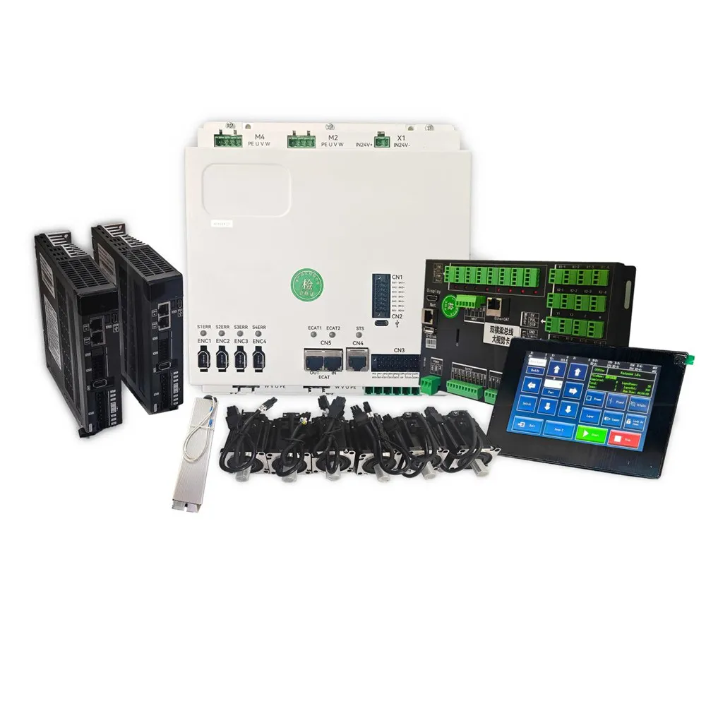 Het ethercat-systeem heeft een sterk anti-interferentievermogen. In vergelijking met een traditioneel 4-assige pulssysteem dat tot 16 signaallijnen nodig heeft, vermindert EtherCAT-regeling de bedrading met 90%, verkort de de assemblagetijd aanzienlijk, verlaagt de foutenpercentages met 60%en verbetert de systeemstabiliteit aanzienlijk. ETERCAT-besturingselement maakt realtime feedback van encoders op beide motoren, dynamisch aanpassen van de koppelverdeling om synchronisatie te behouden. Zelfs bij snelheden van 2000 mm/s kan de synchronisatiefout binnen ± 3μm worden bewaard. Na een vermogensverlies voert het systeem automatische positiecorrectie uit, waardoor onmiddellijke hervatting zonder handmatige interventie mogelijk is.